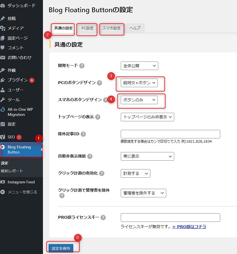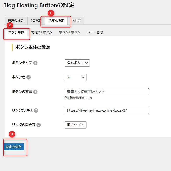 ブログ Blog Floating Buttonの設定 owner2 2021年11月18日 Contents Blog Floating Buttonの設定設定個所は、以下です。PCに表示させる設定スマホに表示させる設定こちらが開発元のサイトです。Blog Floating Buttonの設定 設定個所は、以下です。 PCに表示させる設定 スマホに表示させる設定 こちらが開発元のサイトです。 使い方などが参考になります。 https://bfb-plugin.com/