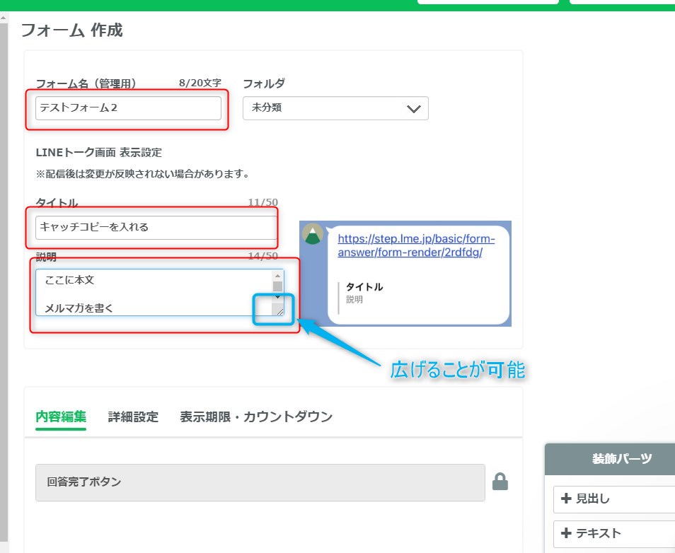 説明は、メルマガの本文を入力します。(メルマガと同様、長文もOKです。)