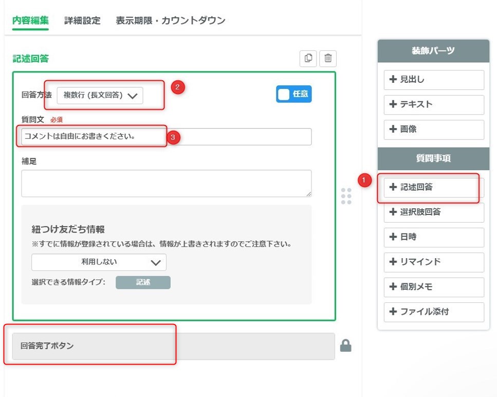 記述回答を入力が終わったら、
