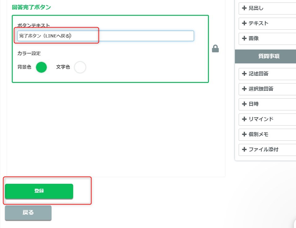 例)完了ボタン(LINEへ戻る)