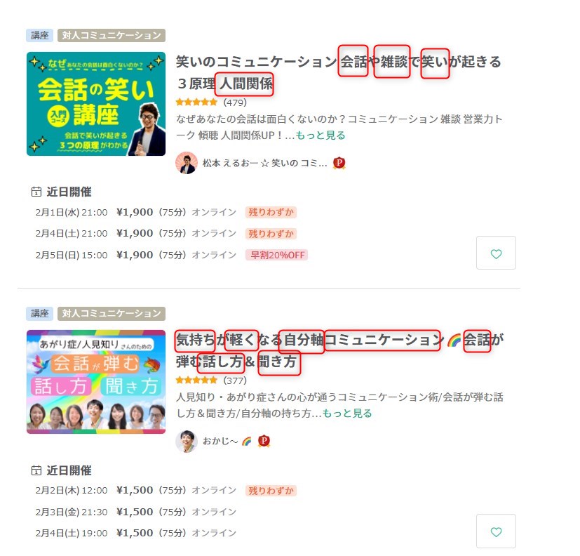 ストアカ内でどのようなキーワードが使われているかピックアップします。